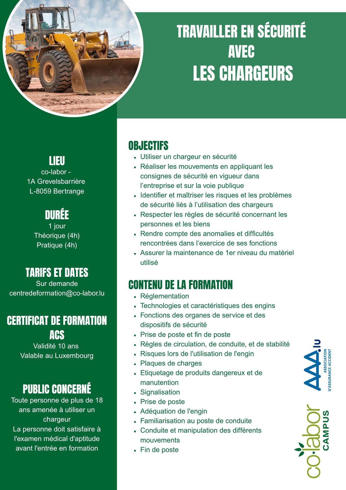 Manipulation en sécurité des chargeurs en appliquant les consignes de sécurité en vigueur dans l'entreprise et sur la voie publique.